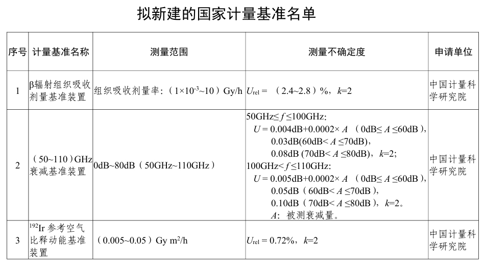 此次市場監(jiān)管總局擬批準新建“β輻射組織吸收劑量基準裝置”等11項國家計量基準,以及變更“2πα、2πβ粒子發(fā)射率副基準裝置”1項國家計量基準技術指標,公示截止日期為2025年12月11日。