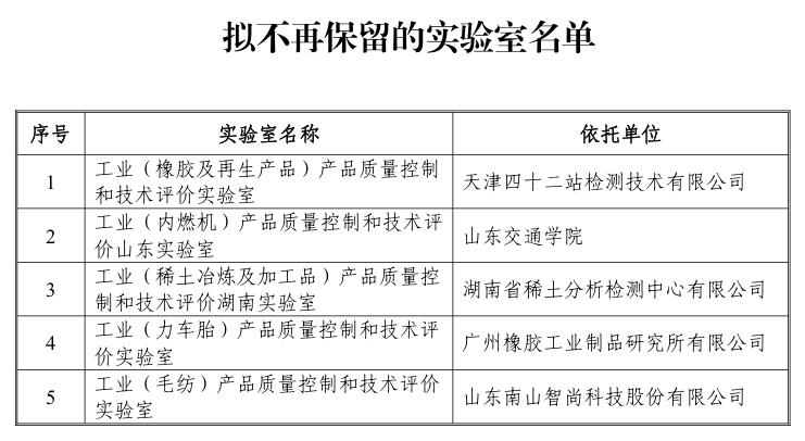 5家實驗室擬不再保留!工業(yè)產(chǎn)品質量控制和技術評價實驗室評估復核結果公布