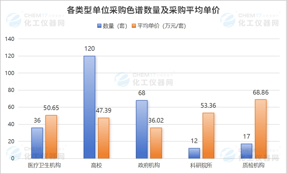 從平均采購單價來看,11月各單位采購色譜儀的平均單價在36-69萬元/套之間。其中,質(zhì)檢機(jī)構(gòu)的平均采購單價最高,采購平均單價為68.86萬元/套;其次為科研院所,采購平均單價為53.36萬元/套。