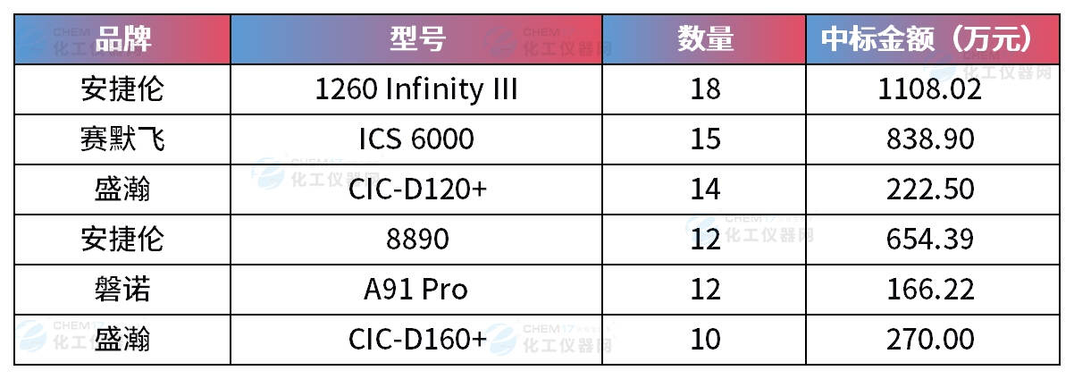 此外,化工儀器網(wǎng)編輯還綜合各品牌色譜儀的中標(biāo)數(shù)量和金額等因素,整理了11月份中標(biāo)數(shù)量前五的色譜儀品牌大熱型號。