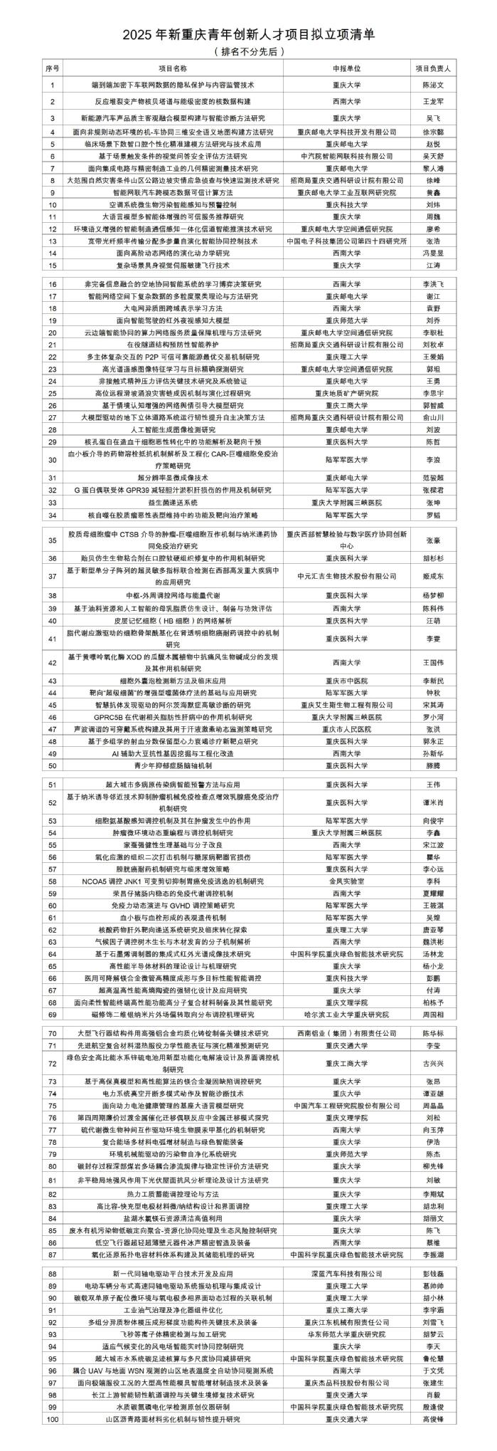 擬立項(xiàng)100項(xiàng)!2025年新重慶青年創(chuàng)新人才項(xiàng)目啟動