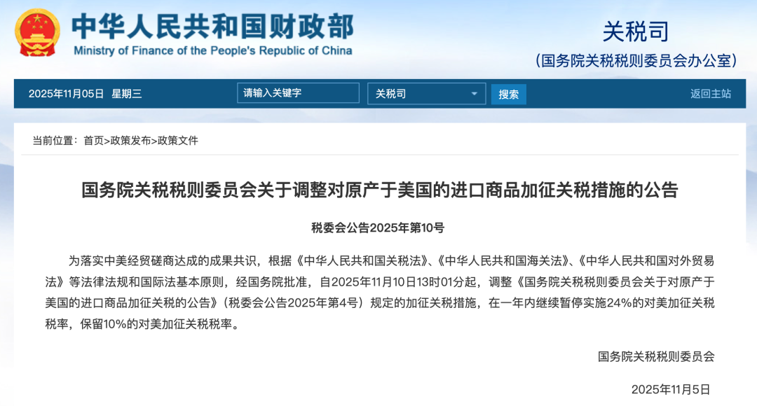 國(guó)務(wù)院關(guān)稅稅則委員會(huì)正式發(fā)布公告,宣布調(diào)整對(duì)美進(jìn)口商品加征關(guān)稅措施,美國(guó)白宮此前公布的對(duì)華貿(mào)易協(xié)議文本也將于同日同步生效,以雙向關(guān)稅調(diào)整推動(dòng)經(jīng)貿(mào)關(guān)系緩和。