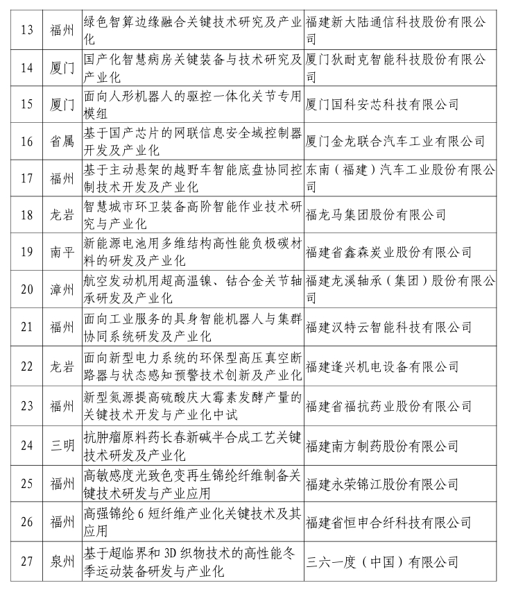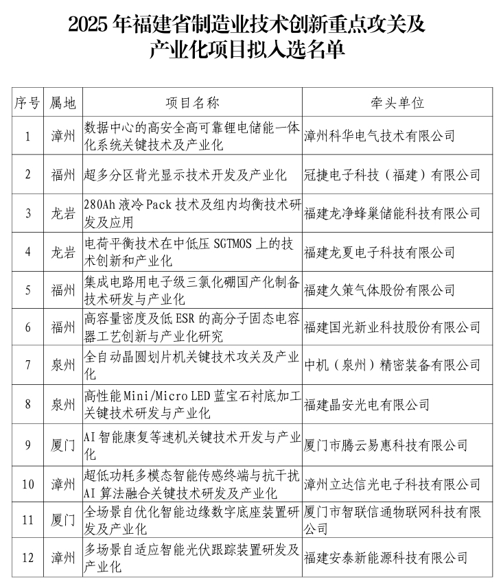 2025年福建省制造業(yè)技術(shù)創(chuàng)新重點(diǎn)攻關(guān)及產(chǎn)業(yè)化項(xiàng)目擬入選名單公布