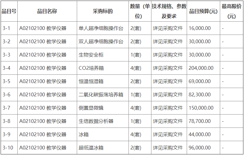 預(yù)算3830萬元 廣州某單位采購生命科學(xué)科研設(shè)備
