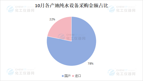 從“10月各產(chǎn)地純水設(shè)備采購(gòu)數(shù)量占比”及“10月各產(chǎn)地純水設(shè)備采購(gòu)金額占比”兩項(xiàng)數(shù)據(jù)來(lái)看,無(wú)論是數(shù)量還是總價(jià),國(guó)產(chǎn)純水設(shè)備的市場(chǎng)占有率都更高,且國(guó)產(chǎn)設(shè)備開始進(jìn)一步發(fā)力。