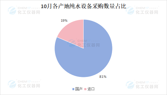 從產(chǎn)地分布來(lái)看:10月純水儀器迎來(lái)進(jìn)口沖擊,國(guó)產(chǎn)進(jìn)一步發(fā)力占據(jù)主要市場(chǎng)
