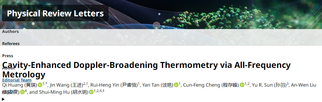 相關(guān)研究成果Gavity-Enhanced Doppler-Broadening Thermometry via All-Frequency Metrology于近日發(fā)表在《物理評(píng)論快報(bào)》(Physical Review Letters)上。該成果與團(tuán)隊(duì)近期在《科學(xué)進(jìn)展》上發(fā)表的線(xiàn)強(qiáng)度比測(cè)溫法工作形成互補(bǔ),創(chuàng)造了光譜學(xué)溫度計(jì)量精度的新紀(jì)錄。