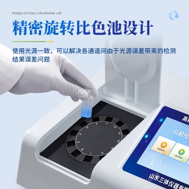 4、檢測(cè)通道:12通道;采用精密旋轉(zhuǎn)比色池設(shè)計(jì),使用同芯片同光源校準(zhǔn)精度,解決不同光源之間的誤差值,更加準(zhǔn)確高效。