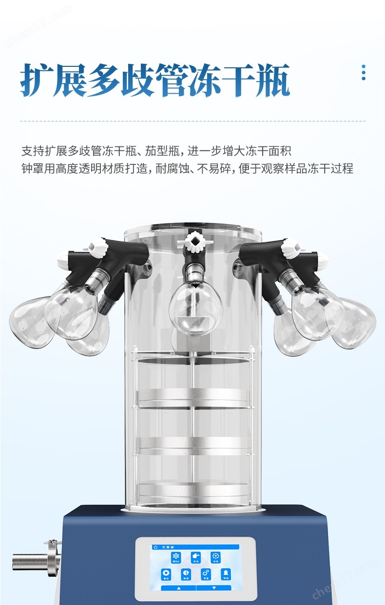 (2) 鐘罩采用高度透明材質(zhì)打造,耐腐蝕、不易碎,便于觀察樣品的凍干過程。
