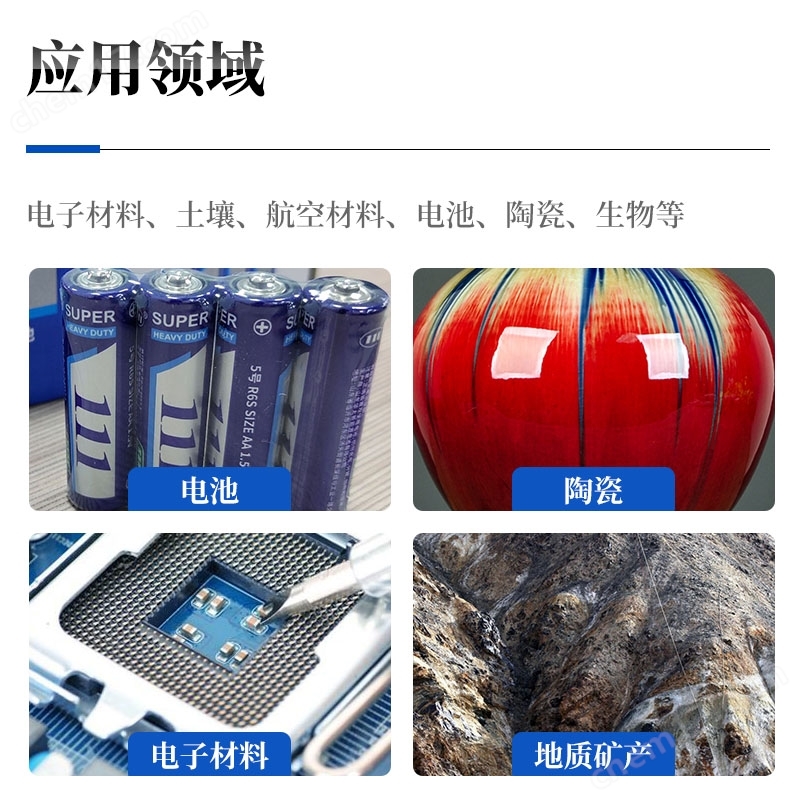 | 應(yīng)用領(lǐng)域 | 電子材料、土壤、航空材料、電池、陶瓷、生物、地質(zhì)礦產(chǎn)、冶金 |