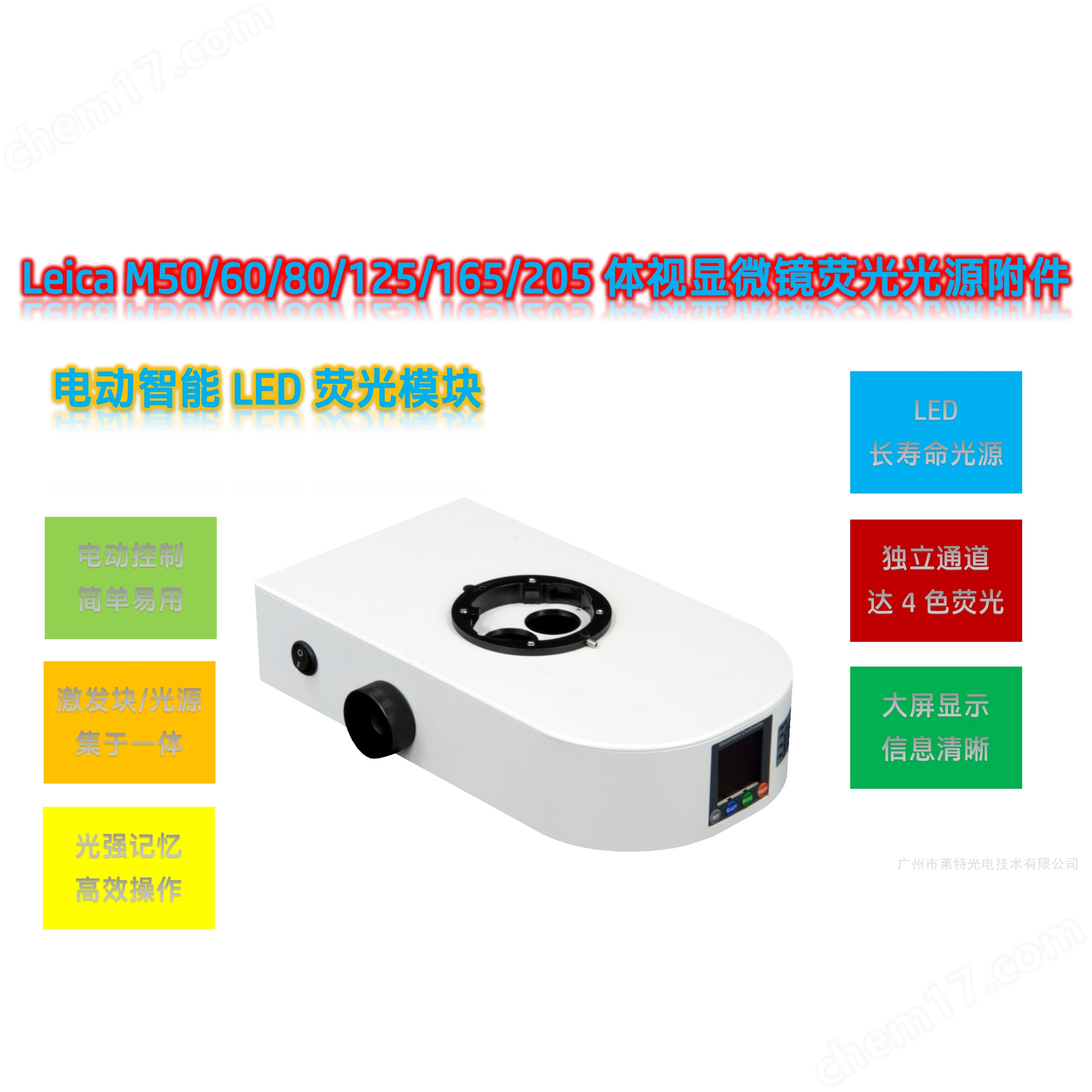 目錄:廣州市萊特光電技術(shù)有限公司>>LED熒光模塊光源附件>>體視熒光模塊附件(Leica)>> M50-UVBGR-ELeica M50體視顯微鏡LED熒光模塊光源附件