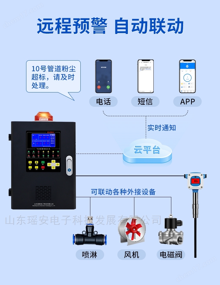 智能化管理:通過智能云端平臺實(shí)現(xiàn)遠(yuǎn)程監(jiān)測,支持電話、短信、小程序等多種預(yù)警方式。超限聯(lián)動功能搭配報(bào)警控制器,可聯(lián)動各種外接設(shè)備。