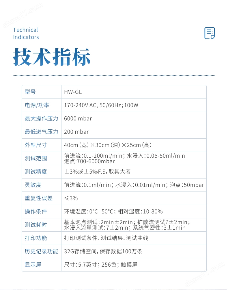 | 測(cè)試耗時(shí) | 基本泡點(diǎn)測(cè)試:2 min±2min;擴(kuò)散流測(cè)試7±2min; 水浸入流量測(cè)試7±2min;系統(tǒng)氣密性:3±1min; |