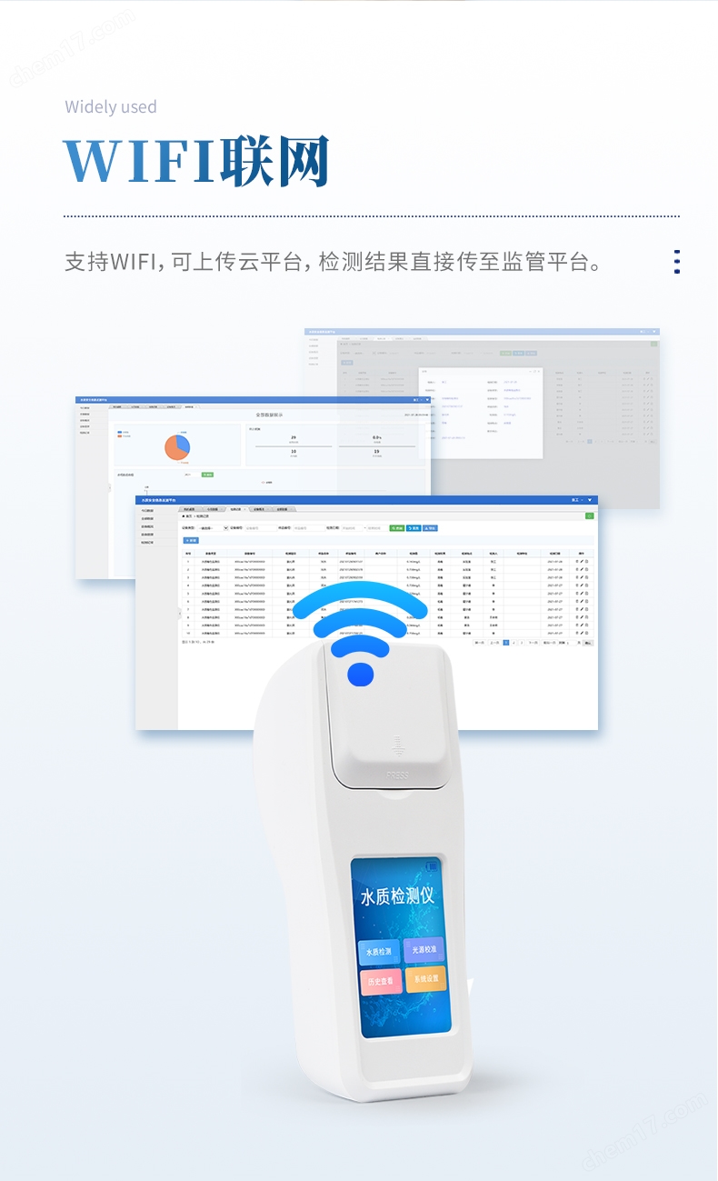 ②配置云監(jiān)控平臺,檢測結(jié)果可直接無線傳至平臺,進(jìn)行水質(zhì)長短期分析,輔助管理。