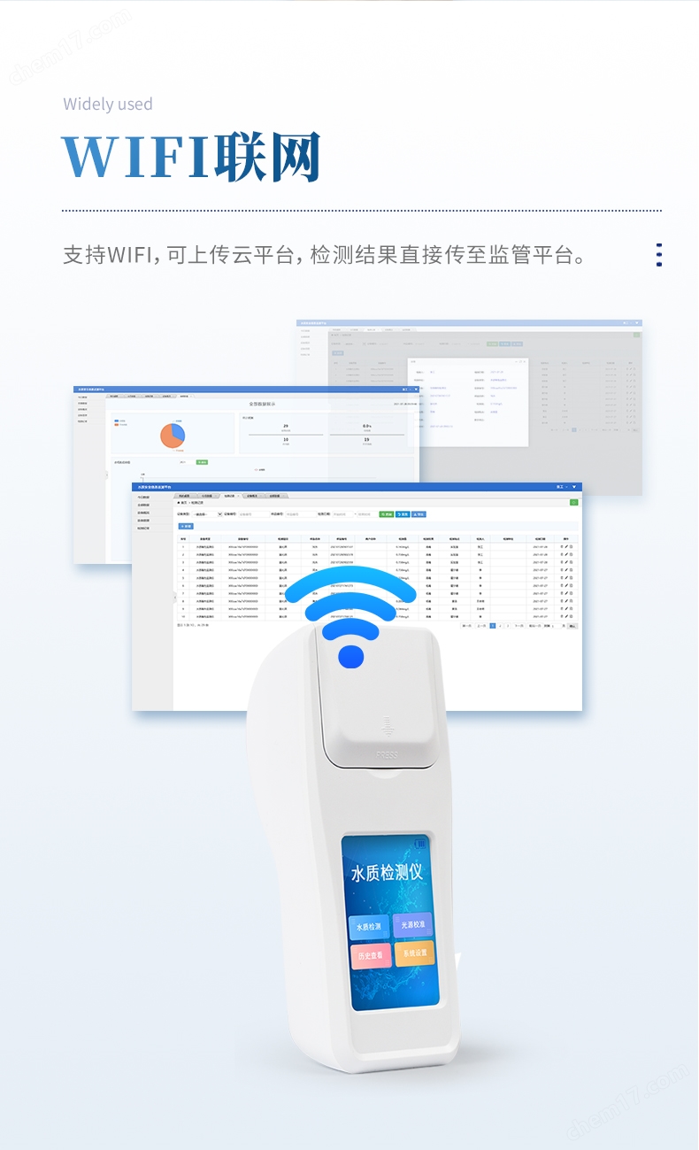 ②配置云監(jiān)控平臺,檢測結(jié)果可直接無線傳至平臺,進行水質(zhì)長短期分析,輔助管理。