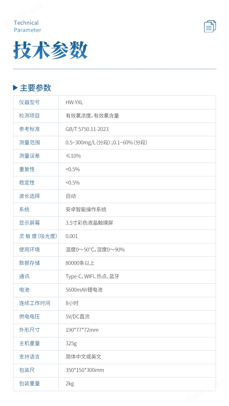 有效氯檢測儀采用分光光度法,參考標準GB/T 5750.11-2023設(shè)計制造,取代傳統(tǒng)的目視比色法,消除了人為誤差,因此檢測分辨率更大,直接讀數(shù),更具人性化,使用更簡單。