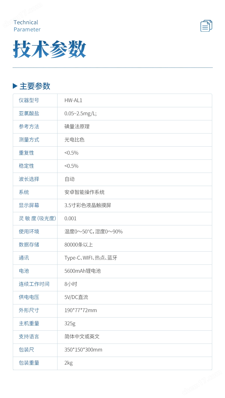 亞氯酸鹽是投放二氧化氯消毒劑后的副產物,超標對人有致癌作用。便攜式亞氯酸鹽檢測儀器配合快速顯色檢測試劑,可“快速、簡單、準確、穩(wěn)定"進行測量,擁有精美的外觀造型,簡單的操作界面,準確的檢測系統(tǒng),幫助用戶獲得精細的數(shù)據(jù),可更準確、有效的分析水體狀況。