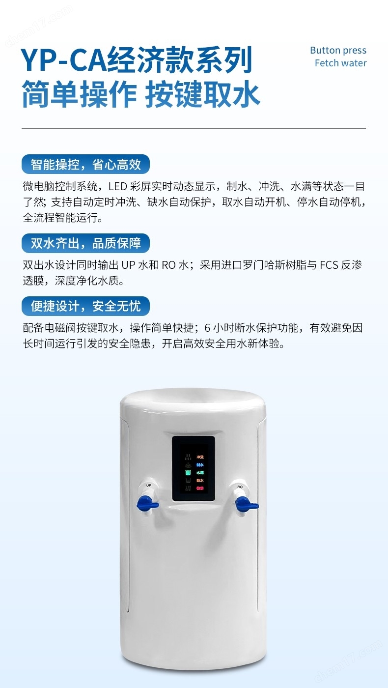 - 智能化功能:現(xiàn)代機型普遍配備智能水控系統(tǒng),缺水時自動停機防止設備空轉(zhuǎn);部分型號支持水質(zhì)實時監(jiān)測,并通過數(shù)碼顯示提醒濾芯更換。