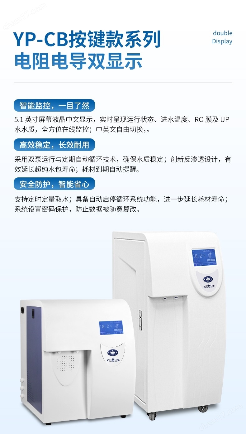 - 實驗室場景:需根據(jù)實驗類型選擇水質(zhì)等級。例如,HPLC(高效液相色譜)需電阻率>10 MΩ·cm的一級水,而常規(guī)化學實驗三級水即可滿足。